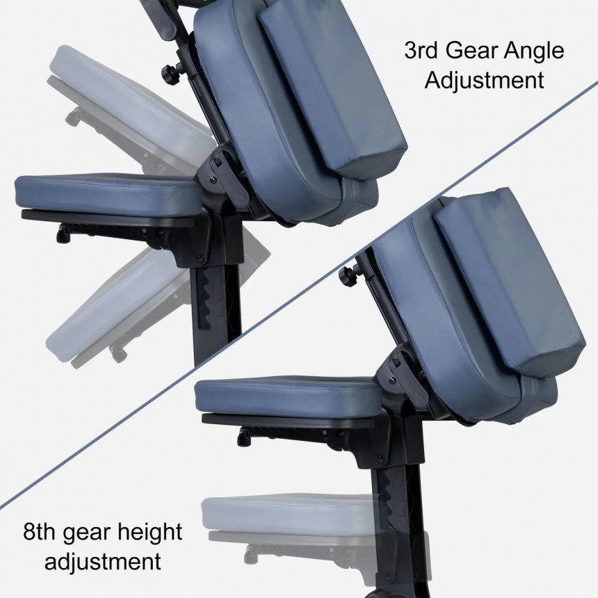 Кресло компактно складывается и легко транспортируется в фирменном чемодане на колёсах, входящем в комплект. Отлично подходит для выездной работы, салонов, СПА-студий и мероприятий.