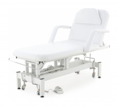 Данная модель сочетает в себе надёжную стальную конструкцию, удобное ложе из высококачественных материалов и простую регулировку ключевых параметров. Благодаря съёмным подлокотникам, газлифтовому механизму изменения угла спинной секции и ножному пульту управления высотой, стол обеспечивает комфорт клиентам и удобство специалистам в самых разных процедурах.
