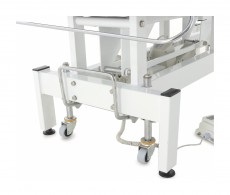 • Для удобной перекатки предусмотрены 2 пары колёс (Ø50×25 мм) с механизмом выдвижения нажимного типа, позволяющим перемещать стол усилиями одного человека.